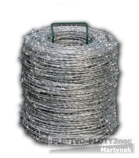 Možno použít pro zajištění proti přelezu u všech druhů plotů. Ostnatý drát se střídavým navíjením drátů se čtyřmi ostny.
