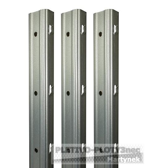Sloupek k lesnickému pletivu. Sloupky lze opětovně použít při přemístění oplocení. Na hraně dloupku jsou prolisy, por snadné uchycení lesnického pletiva. Prolisy po celé délce, zvyšují pevnost sloupku